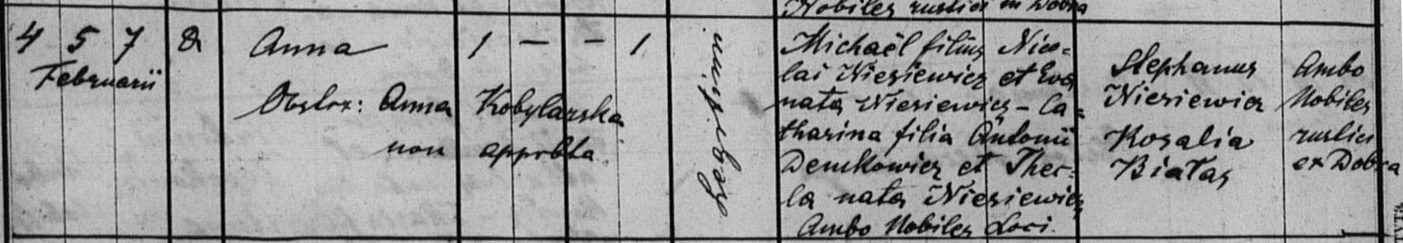 Born Anna Niesiewicz Dobrzanski on 04 Feb 1875 and married on 08 Oct 1894 in Dobra Szlachecka to Antonius Krowiak b. 18 Apr 1868, d. 18 Mar 1945.