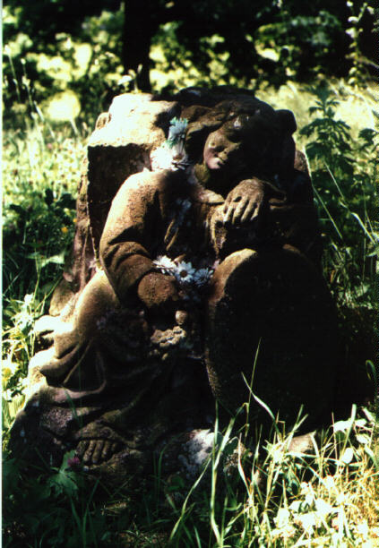 This is the monument to a daughter of one of Dobra's priests. She died young and he comissioned the stone monument which has survived and is located within the wall encompassing the church.