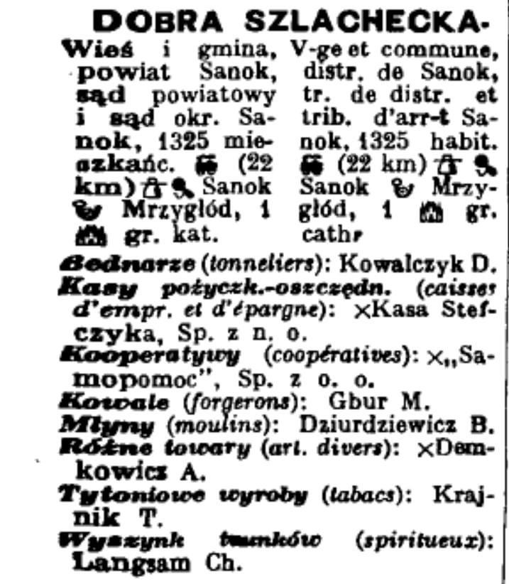 Village and commune, Sanok county, district court and Sanok regional court. 1,325 inhabitants, post office Mrzyglod, Greek Catholic church in the place.