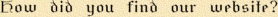 Name: Aleksander Kwasniewski Website: Referred by: Yahoo From: Warszawa, Poland Time: 1997-05-07 10:20:00 Comments: Guest: Aleksander Kwasniewski Email: Age: Where are you from? Warszawa, Poland Homepage: How did you find our website? Yahoo Date: {ts '1997-05-11 14:53:29'} Nice homepage. Keep up the great work! |