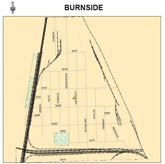 to the railroad works and became a home for many of the Dobra Immigrants. Burnside bounded by 89th Street on