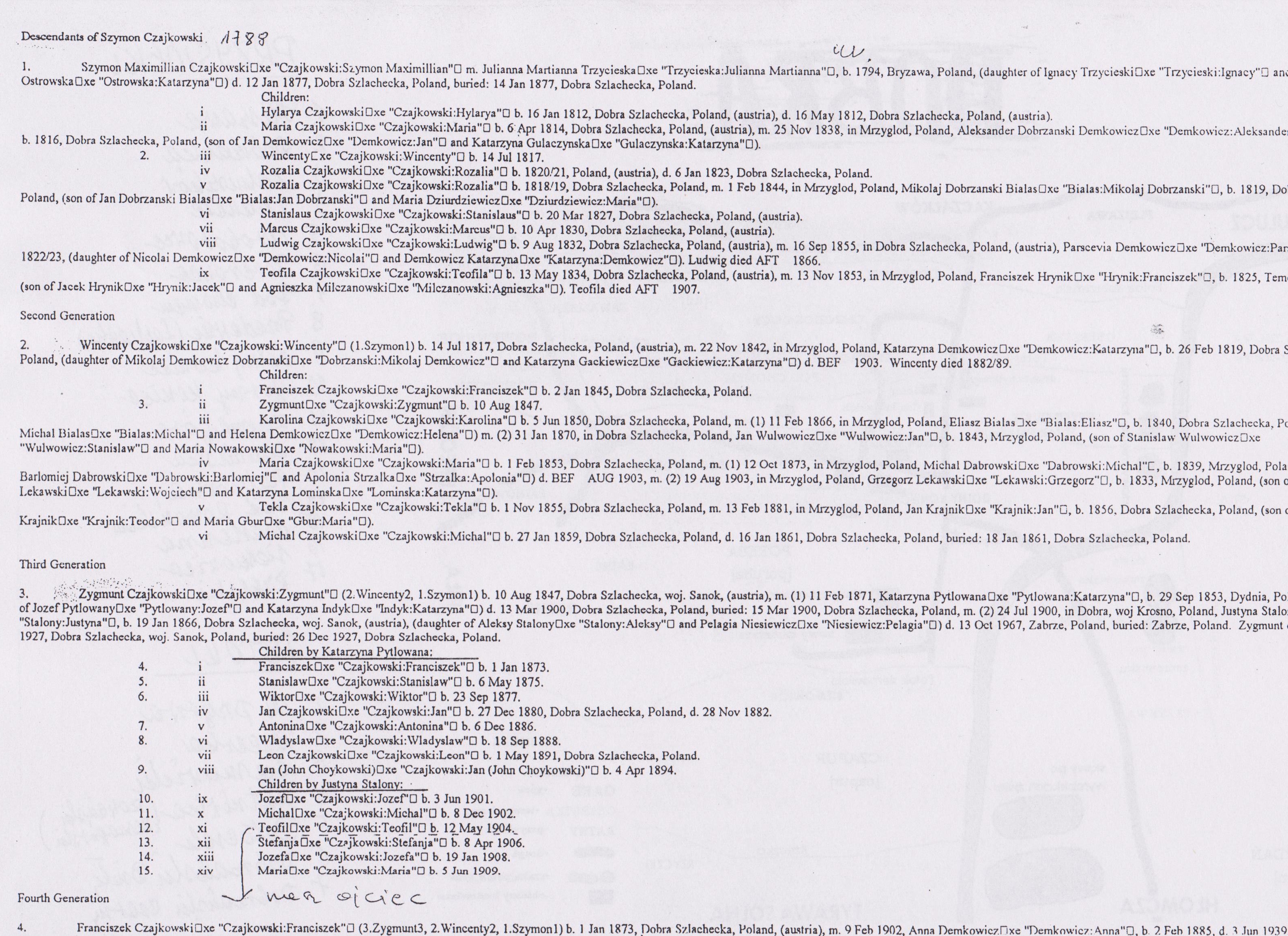Descendants of Szymon Czajkowski