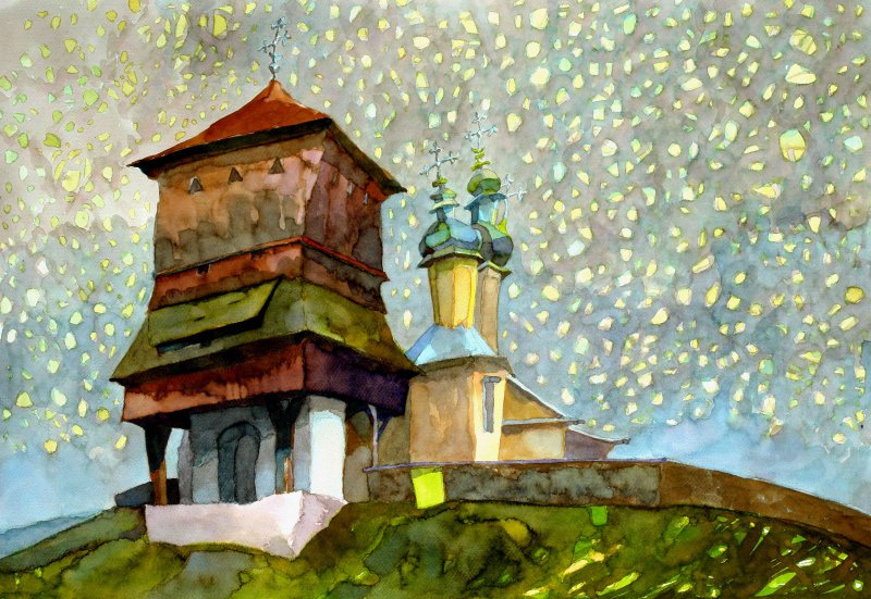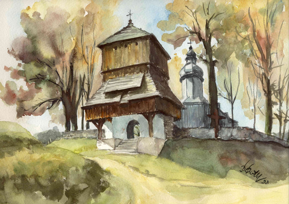 Artur Zienko, cerkiew w Dobrej, oil on canvass 40x50 cm, commissioned by Jan Popiel
